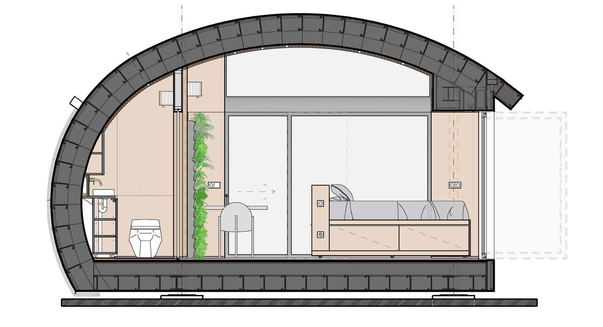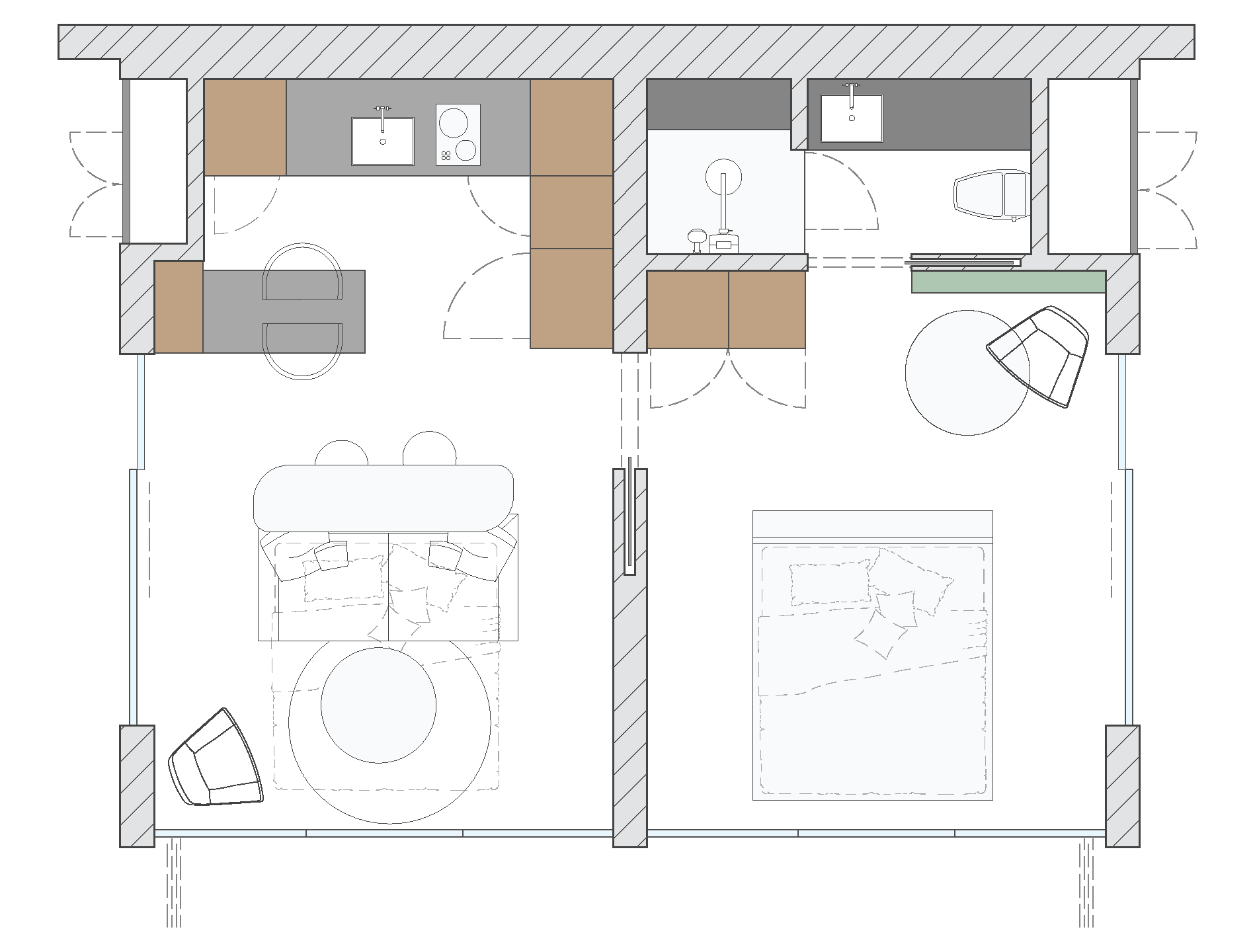 More space, more freedom. Two separate modules create distinct living and sleeping areas.